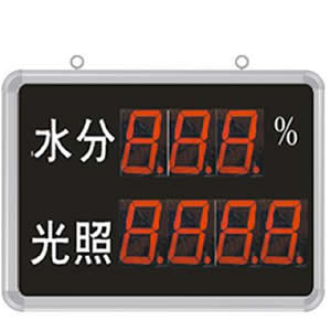 显示器分2排显示2个状态量,第一排为水分,第二排为光照度。