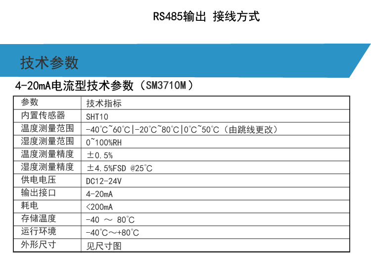 SM3710风管式温湿度变送器为可远距离传输的温湿度变送器,采用4-20mA/0-5V/RS485等工业通用接口,可直接接入各种显示仪表,实现温湿度监测。