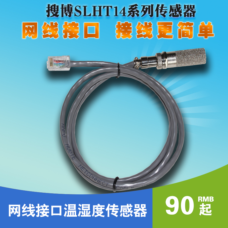 SLHT14包括SLHT14-1、 SLHT14-2、SLHT14-3,SLHT14-4,SLH4-5,SLHT14-6,SLHT14-7共7种型号。RJ45温湿度传感器并无TCP/IP通讯功能,仅为了方便与RJ45网线座连接而设计的。产品标配1米线长,最长支持50米,用户有长线要求可订制。